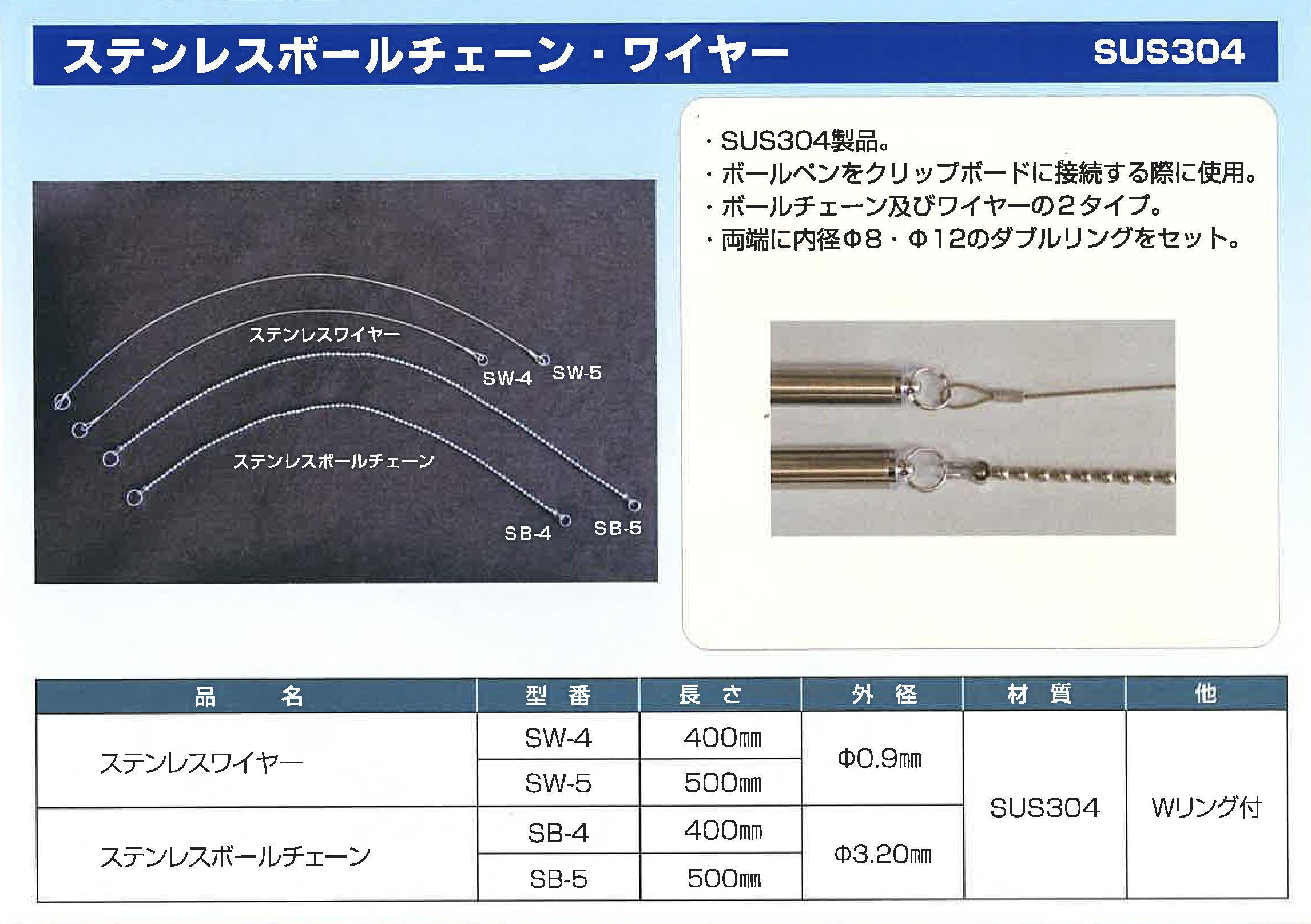 ■ ステンレスボールチェーン・ワイヤー(SUS304)