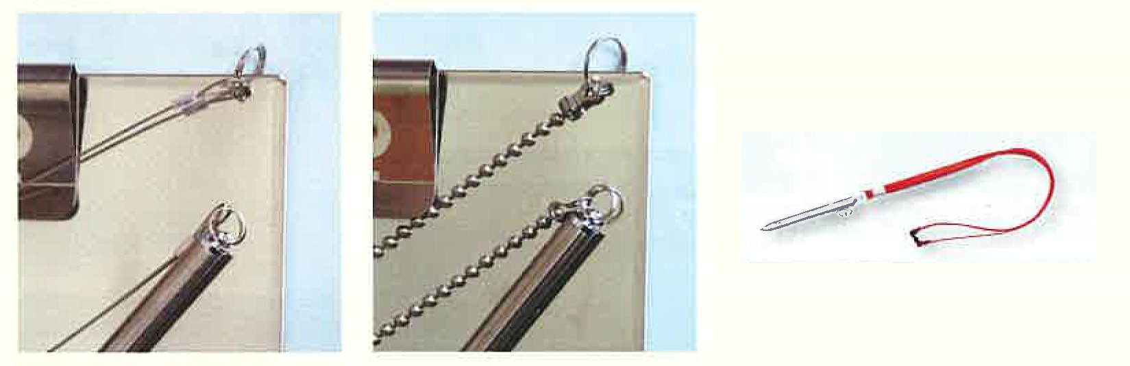 ・ステンレスワイヤー、ステンレスボールチェーンまたはネックストラップへの取り付けが可能です。