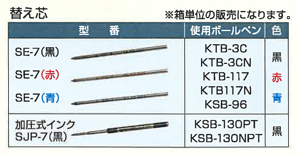 替え芯は箱単位(10本入り)で販売しています。